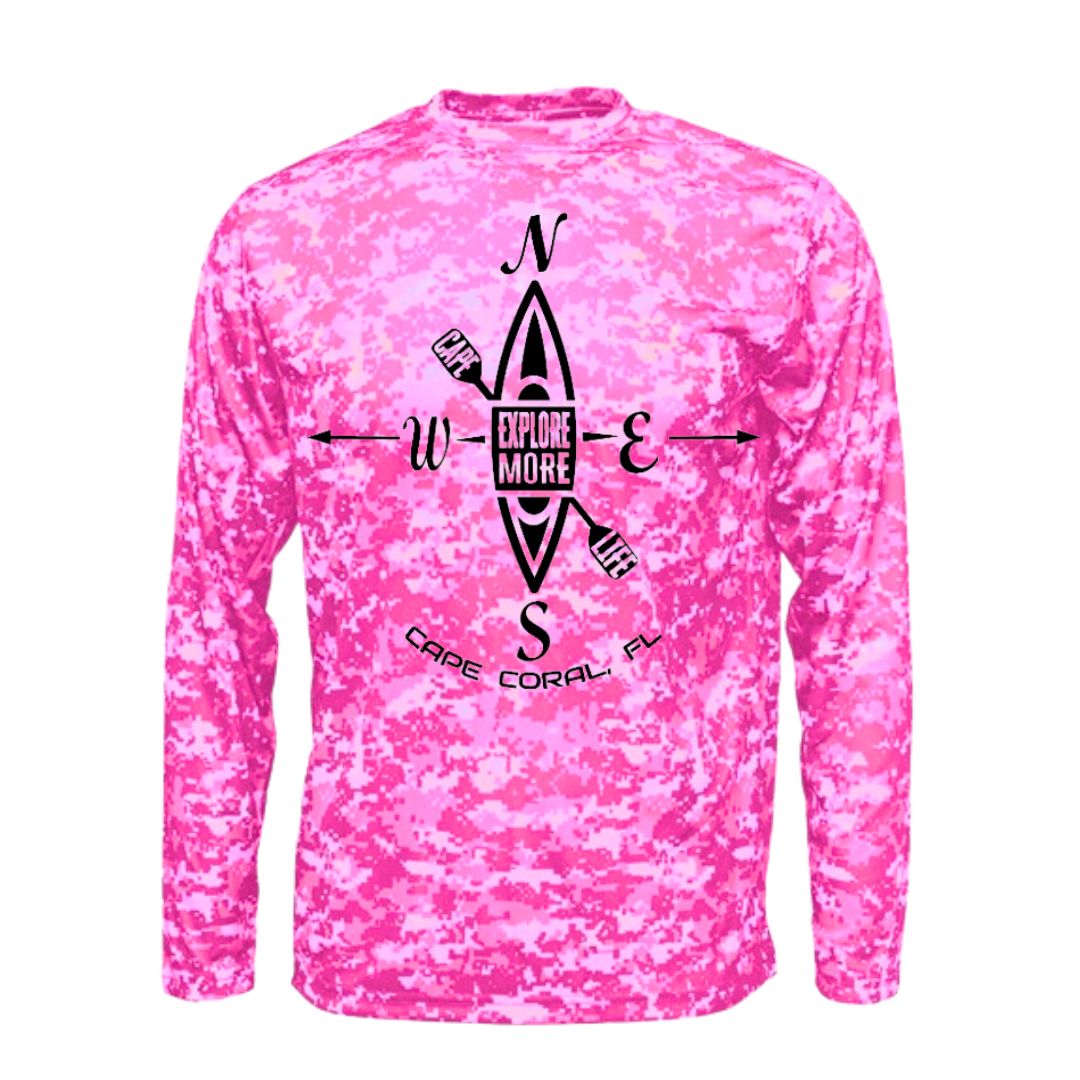 Kids are always looking to explore more, and this camo sun shirt with a kayak graphic design is just the ticket they need to do so. Kids love the digital camo print and adventurous design. Parents and grandparents love that the high-tech sun protection fabric blocks 98% of the sun's harmful rays.